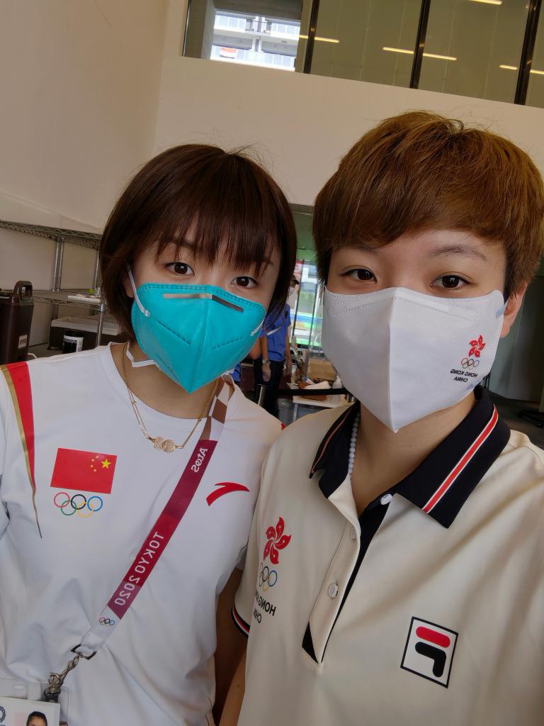 杜凱琹(右)與中國隊(duì)運(yùn)動(dòng)員陳夢合影。受訪者供圖