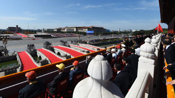 - 習近平等向城樓下的中外來賓和各界群眾揮手致意