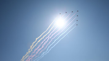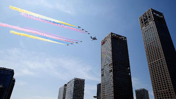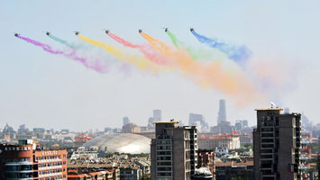- 領隊機梯隊飛過天安門 8道彩煙絢麗奪目