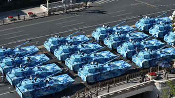 - 27個地面裝備方隊編成6個模塊依次通過天安門廣場
