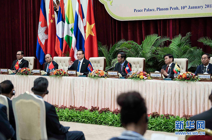 新華社金邊1月10日電(記者劉劼 陳二厚)國務(wù)院總理李克強(qiáng)當(dāng)?shù)貢r間1月10日下午在金邊和平大廈出席瀾滄江-湄公河合作第二次領(lǐng)導(dǎo)人會議后,同會議共同主席國柬埔寨首相洪森以及老撾總理通倫、泰國總理巴育、越南總理阮春福和緬甸副總統(tǒng)吳敏瑞共同會見記者,介紹會議成果。