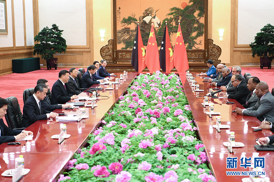 習(xí)近平指出,2018年11月,我成功對(duì)巴布亞新幾內(nèi)亞進(jìn)行國事訪問并同8個(gè)建交太平洋島國領(lǐng)導(dǎo)人舉行會(huì)晤。當(dāng)前,中國同巴新關(guān)系處于歷史最好時(shí)期。中方高度贊賞巴新政府將發(fā)展對(duì)華關(guān)系作為外交優(yōu)先方向,在涉及中國核心利益問題上給予中方堅(jiān)定支持。中方支持巴新方自主選擇適合本國國情的發(fā)展道路,愿同巴新方增進(jìn)互信,深化合作,厚植友誼,加強(qiáng)在多邊框架內(nèi)協(xié)調(diào)和合作,推動(dòng)兩國全面戰(zhàn)略伙伴關(guān)系得到更大發(fā)展。巴布亞新幾內(nèi)亞在開展共建“一帶一路”合作方面走在太平洋島國前列,我們要進(jìn)一步拓展合作,為在島國地區(qū)共建“一帶一路”作出示范和引領(lǐng)。