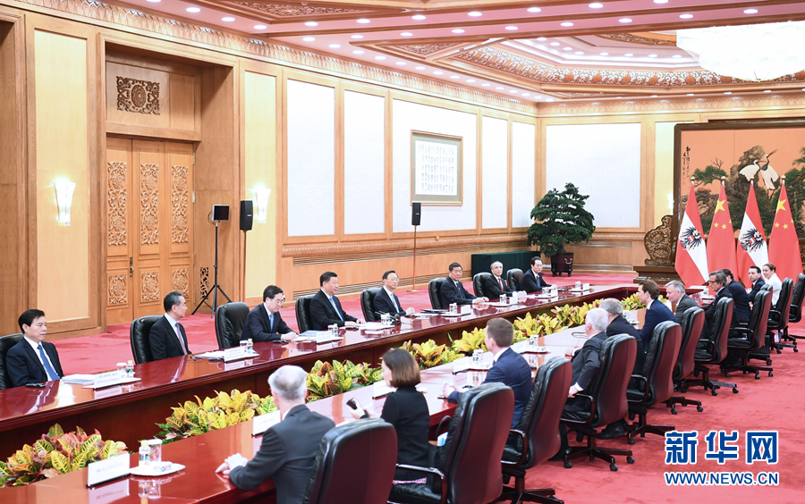 習近平指出,中方高度重視發(fā)展中奧關(guān)系。兩國友好戰(zhàn)略伙伴關(guān)系不斷得到充實。中奧合作潛力巨大,前景廣闊。雙方要堅持平等相待、相互尊重,不斷將雙邊關(guān)系推向新高度。要為加強兩國人文交流搭建更多平臺,促進兩國民心相通。中方歡迎奧方積極參與共建“一帶一路”和“16+1合作”,贊賞奧方對中國投資展現(xiàn)的開放姿態(tài),歡迎奧地利企業(yè)抓住中國新一輪擴大開放帶來的機遇。