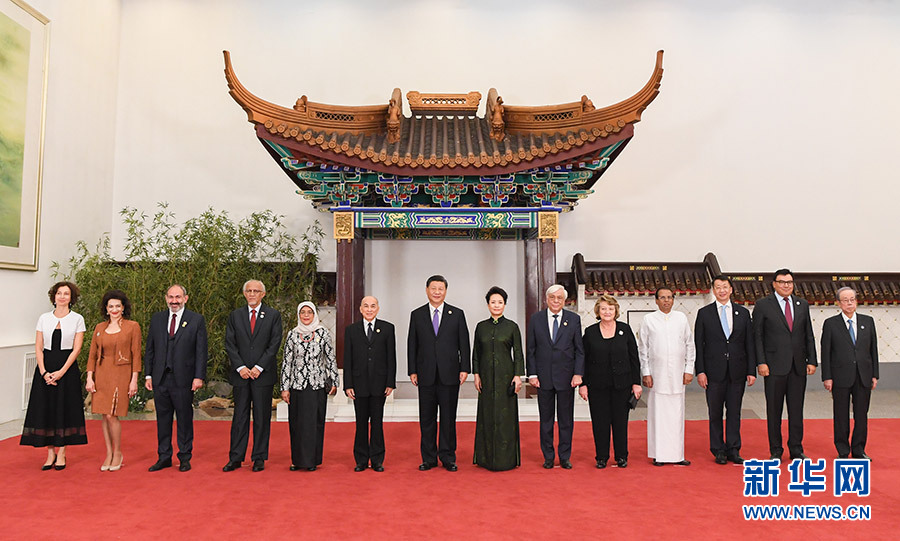習(xí)近平和彭麗媛歡迎出席亞洲文明對(duì)話大會(huì)的外方領(lǐng)導(dǎo)人夫婦及嘉賓