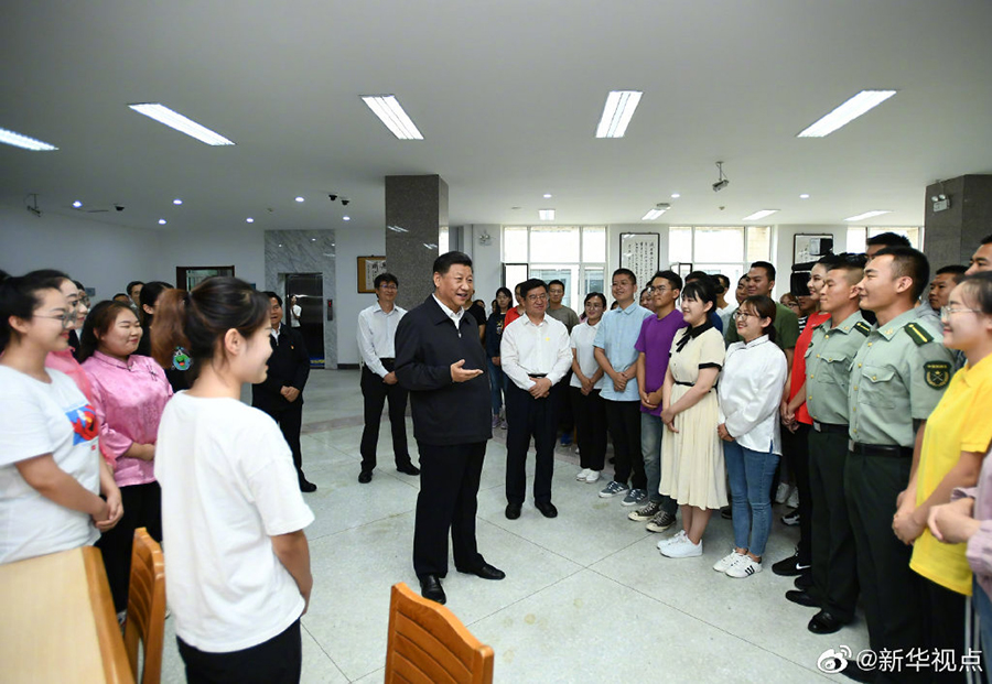 16日上午,正在內(nèi)蒙古考察調(diào)研的習(xí)近平總書記來到內(nèi)蒙古大學(xué),走進圖書館同學(xué)生們親切交談。習(xí)近平指出,少年強則中國強??吹侥昵嗳私】德斆?、奮發(fā)向上,充滿正能量,心里十分高興。長江后浪推前浪,青出于藍而勝于藍,未來是屬于年青人的。在中華民族偉大復(fù)興的進程中,你們生逢其時,何其幸也。再過30年,到本世紀(jì)中葉實現(xiàn)第二個百年奮斗目標(biāo)的時候,你們正好是國家的骨干和棟梁。大家要志存高遠(yuǎn)、腳踏實地,學(xué)好知識,打好基礎(chǔ),增長才干,將來為中華民族偉大復(fù)興貢獻自己的智慧和力量。 (文字:張曉松、朱基釵 攝影:謝環(huán)馳、李學(xué)仁)