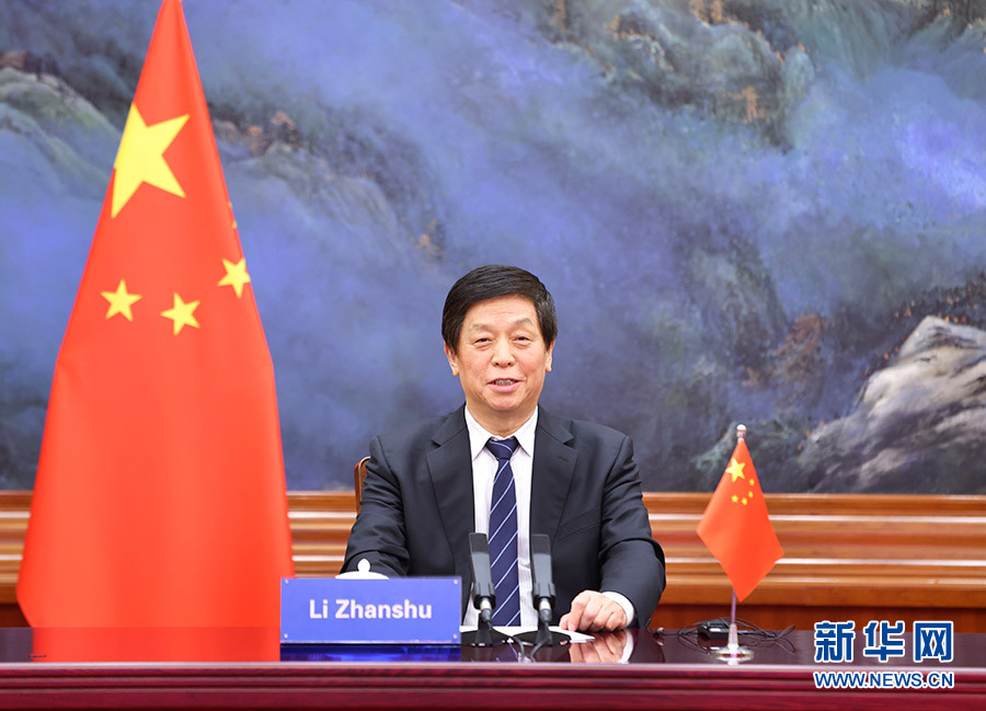 10月27日,全國人大常委會委員長栗戰(zhàn)書在北京人民大會堂出席第六屆金磚國家議會論壇視頻會議并發(fā)表講話。 新華社記者 龐興雷 攝