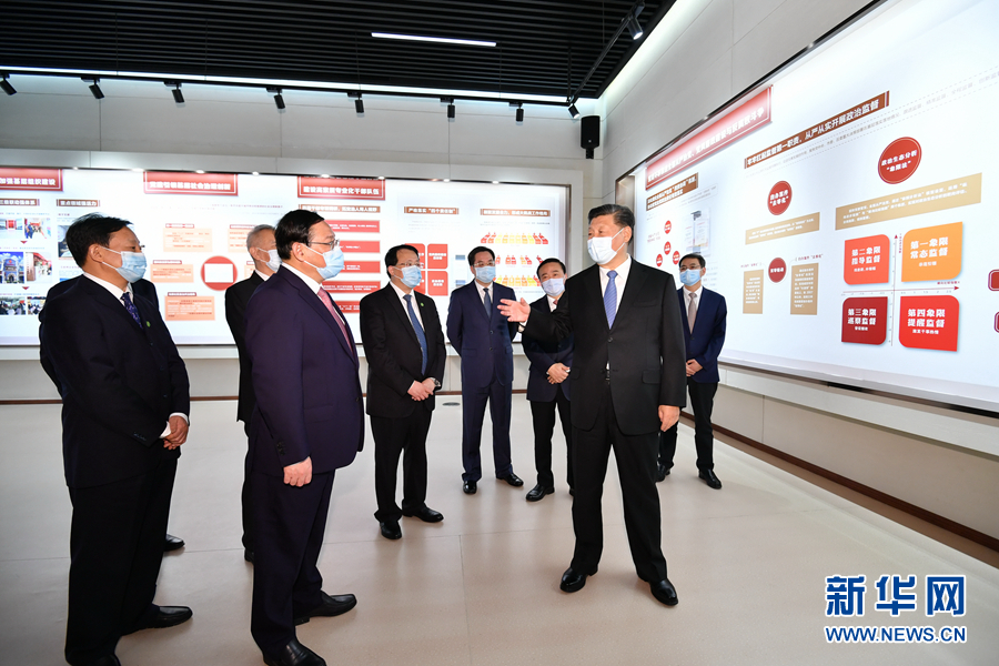 慶祝大會(huì)后,總書(shū)記來(lái)到浦東展覽館,參觀“在國(guó)家戰(zhàn)略的引領(lǐng)下——浦東開(kāi)發(fā)開(kāi)放30周年主題展”。