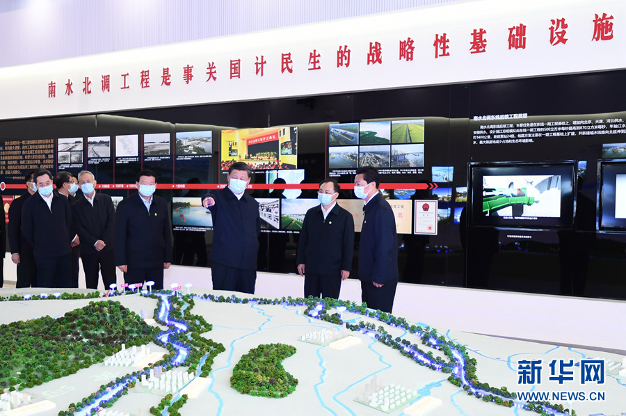 一個(gè)大型沙盤模型直觀地呈現(xiàn)了中國(guó)大地上水資源大范圍大規(guī)??鐓^(qū)域調(diào)配的壯闊景象,習(xí)近平總書(shū)記駐足凝望——
