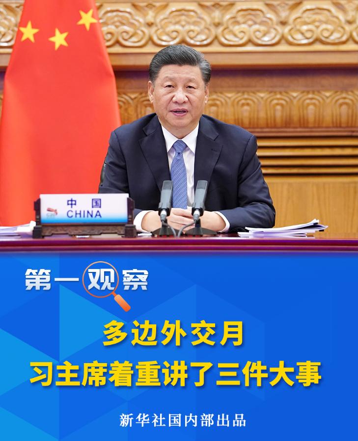 繼9月底10月初出席聯合國成立75周年系列活動,11月10日至22日,習近平主席又以視頻方式接連出席了上合、金磚、APEC、G20四大多邊平臺的一系列重大外交活動。