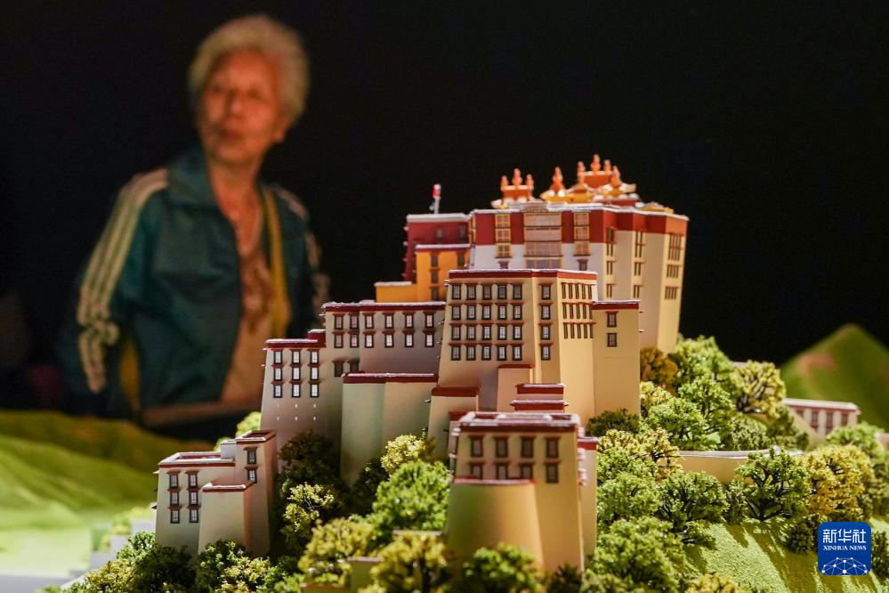 5月11日,观众在展出现场参观拍摄布达拉宫模型。