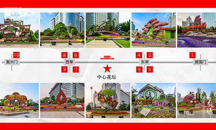 長安街沿線,從建國門到復(fù)興門,布置了10組立體花壇,體現(xiàn)決勝全面小康,共襄復(fù)興偉業(yè)的壯闊藍圖。