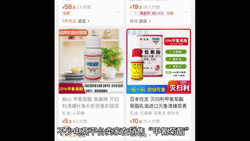 記者調(diào)查發(fā)現(xiàn),目前在淘寶、拼多多、京東等電商平臺上,存在大量宣稱可以“徹底毒殺”魚塘中雜魚、蝦蟹、鱔貝等水生物的“清塘”產(chǎn)品。其中甚至出現(xiàn)了“甲氰菊酯”“溴氰菊酯”等農(nóng)藥的身影。