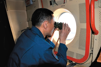 24日,中國空軍機組人員在任務海域搜索。 新華社發(fā)