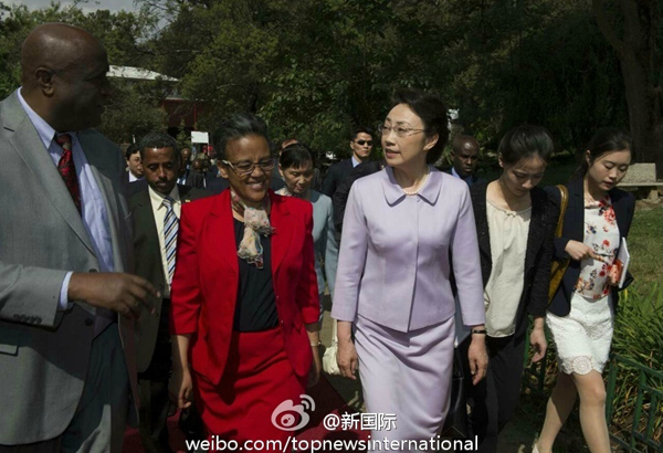 ????新華網(wǎng)北京5月6日電 據(jù)新華社“新國際”微博報道,李克強(qiáng)總理夫人程虹5日在埃塞俄比亞總理夫人羅曼·塔斯法耶的陪同下參觀了亞的斯亞貝巴大學(xué),觀摩漢語授課,與學(xué)生們交流,觀看學(xué)生們的中國文化才藝展示,還捐贈了書籍、計算機(jī)等物品。程虹說,你們是文化的紐帶,感謝你們對中國人民的情誼。你們對中國文化的熱愛感動了我,也會感動中國人民。