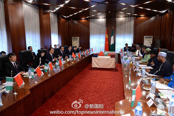 ????新華網北京5月8日電 據新華社“新國際”微博報道,李克強總理7日與尼日利亞總統(tǒng)喬納森會談。喬納森感謝李克強在尼安全形勢嚴峻的情況下如期到訪,是患難見真情。李克強表示中方將對尼提供各種支持和幫助,同時希望尼方切實加強對在尼中國公民的保護。目前中國在尼有6.5萬人,是我在非人員最多的國家之一。