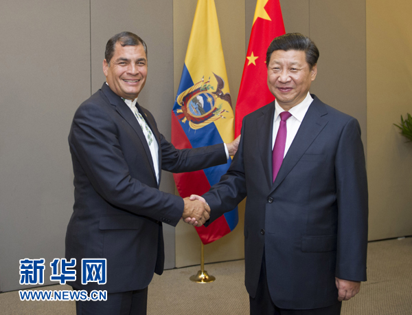 國家主席習(xí)近平16日在巴西利亞會(huì)見厄瓜多爾總統(tǒng)科雷亞。
