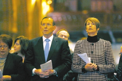 19日,澳總理及妻子在悉尼參加馬航墜機澳大利亞遇難者悼念儀式。圖/CFP