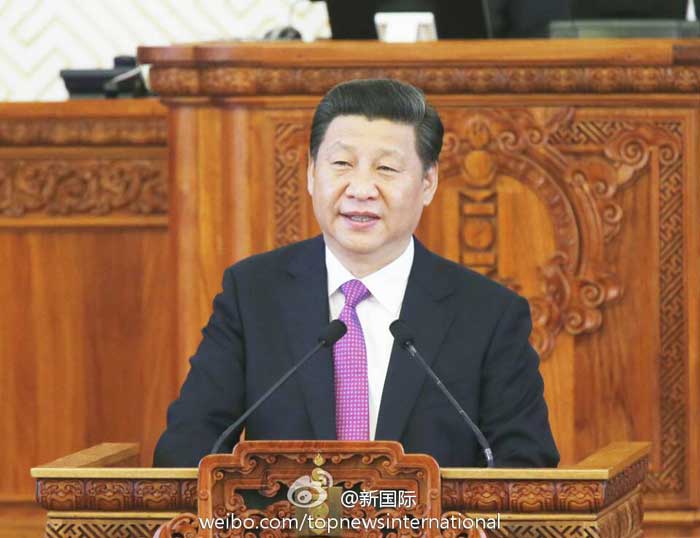 ???? 新華網(wǎng)北京8月22日電 據(jù)新華社“新國際”微博報道,習(xí)近平主席22日在蒙古國國家大呼拉爾發(fā)表演講時說,中國愿意為周邊國家提供共同發(fā)展的機遇和空間,歡迎大家搭乘中國發(fā)展的列車,搭快車也好,搭便車也好,我們都?xì)g迎。(新華社記者鞠鵬攝)?