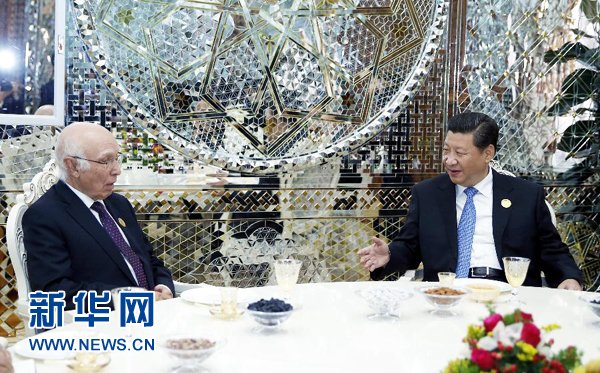 ????新華網(wǎng)杜尚別9月12日電(記者侯麗軍 劉紅霞)9月12日,國(guó)家主席習(xí)近平在杜尚別會(huì)見(jiàn)巴基斯坦總理國(guó)家安全和外事顧問(wèn)阿齊茲。