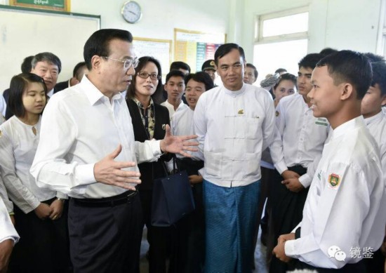 克強(qiáng)總理在內(nèi)比都第十四中學(xué)