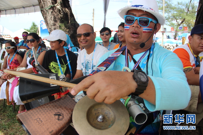 ??? 11月16日,泰國民眾為泰國運動健兒加油。中國體育代表團16日在泰國普吉舉行的第四屆亞洲沙灘運動會上勇奪2枚金牌和2枚銅牌。當天比賽全部結束時,中國隊以3金2銀5銅的成績暫列獎牌榜第五,東道主泰國隊以9金11銀12銅的成績暫列金牌榜和獎牌榜第一。新華社發(fā)(塔納攝)