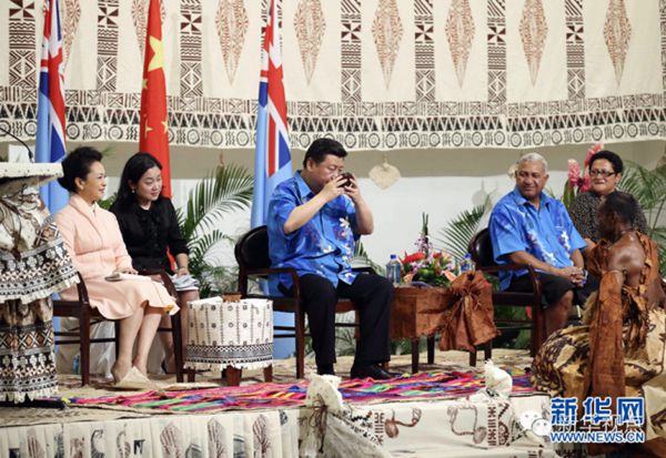 ????——“中國同太平洋島國關(guān)系正站在新的歷史起點上,我們愿同各島國一道努力,求友誼之真,務(wù)合作之實,結(jié)共贏之果,共圓發(fā)展繁榮和諧之夢。”習(xí)主席22日在楠迪同太平洋島國領(lǐng)導(dǎo)人舉行集體會晤并發(fā)表主旨講話時說。