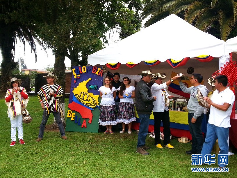 ????哥倫比亞的咖啡、燉肉和草帽吸引了許多來(lái)賓。(新華網(wǎng)記者 梁君茜 攝)