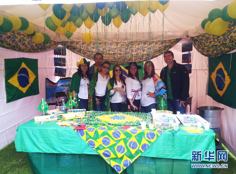 ????“桑巴軍團(tuán)”的攤位布置讓人覺得仿佛又回到了世界杯。(新華網(wǎng)記者 梁君茜 攝)