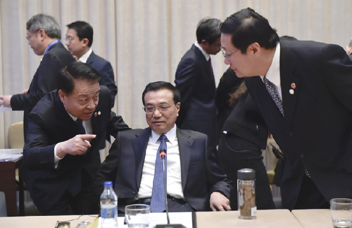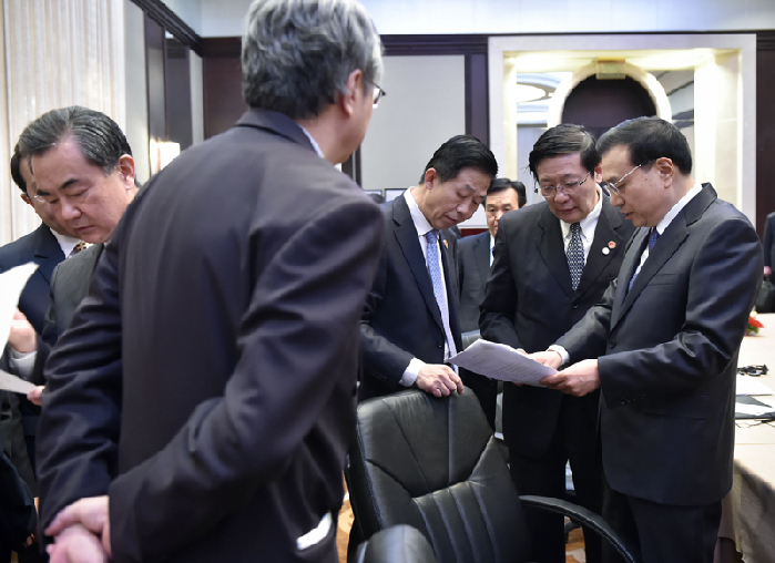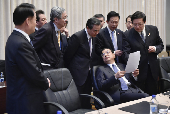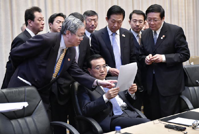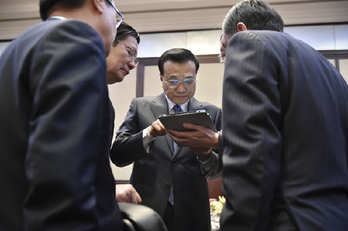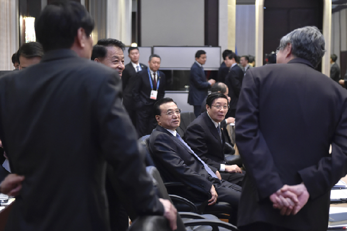 會議間隙的李克強(qiáng)。中新社 劉震 攝
