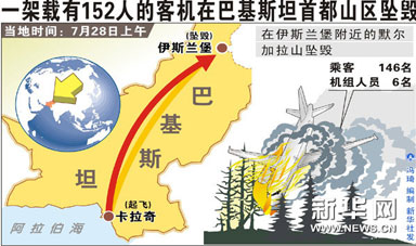 巴基斯坦藍色航空公司一架由卡拉奇飛往伊斯蘭堡的客機在伊斯蘭堡附近山區(qū)墜毀,機上152名乘客和機組人員全部遇難。詳細