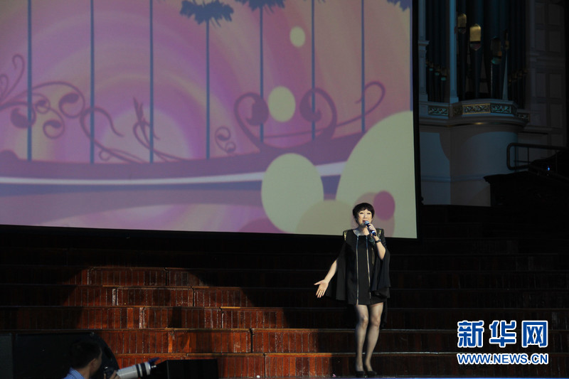 ??????? 2月25日,由中國國務(wù)院僑辦和中國海外交流協(xié)會(huì)聯(lián)合主辦的“文化中國·四海同春”在悉尼舉辦大洋洲團(tuán)的首場演出,歌手成方圓、中國好聲音學(xué)員李維、周深等國內(nèi)知名表演者和中澳藝術(shù)團(tuán)體為當(dāng)?shù)厝A僑華人送來新春祝福。圖為東方歌舞團(tuán)著名歌手成方圓演唱《童年》。新華社記者趙小娜攝