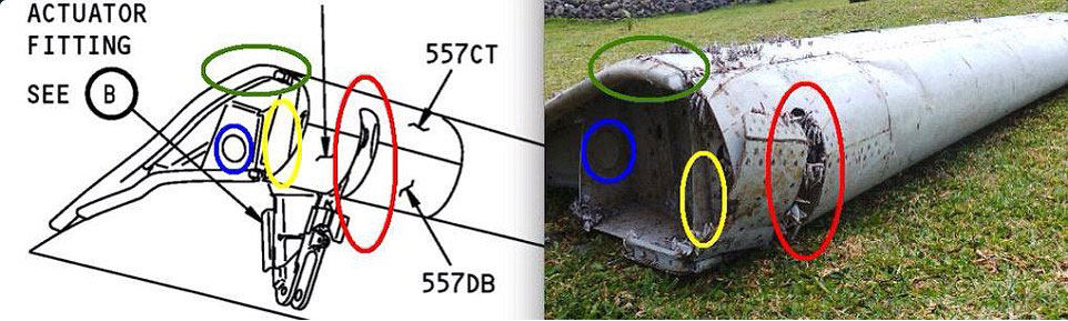 航空專家根據(jù)現(xiàn)場圖片分析稱,這塊殘骸或?yàn)椴ㄒ?77機(jī)翼的襟副翼,用于控制飛機(jī)的水平傾斜,而馬航MH370客機(jī)則同屬于波音777機(jī)型。