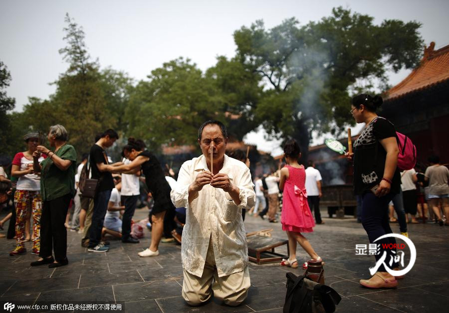 盡管馬來西亞民航局在2015年1月29日宣布,馬航MH370航班失事,并推定機(jī)上所有239名乘客和機(jī)組人員已遇難。但對遇難者家屬來說,始終希望,離去的親人會有歸來的那天。北京,馬航失聯(lián)乘客家屬在雍和宮燒香祈福。