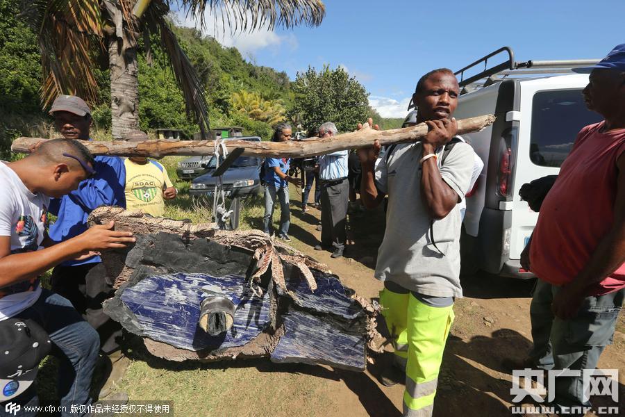 當(dāng)?shù)貢r間2015年8月11日,法屬留尼汪島,當(dāng)?shù)厮丫汝牜@得的馬航MH370殘骸。