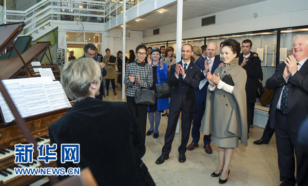 彭麗媛抵達(dá)時(shí),受到皇家音樂學(xué)院董事會(huì)主席溫斯頓勛爵、學(xué)院院長、英國友人等熱烈歡迎。在院長陪同下,彭麗媛欣賞了獲獎(jiǎng)學(xué)生和校友精彩的聲樂、器樂表演,參觀了樂器博物館,觀賞了圖書館珍藏的莫扎特、肖邦等音樂大師創(chuàng)作手稿,并同學(xué)院師生進(jìn)行交流。彭麗媛表示,音樂作為一種高尚的藝術(shù)形式,超越國家、民族、歷史、文化界限?;始乙魳穼W(xué)院培養(yǎng)出眾多世界級藝術(shù)家。中國有不少音樂作品享譽(yù)世界,希望皇家音樂學(xué)院今后加強(qiáng)同中國音樂院校的交流,為促進(jìn)中英教育和藝術(shù)合作貢獻(xiàn)力量。
