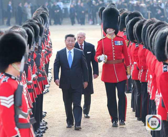 國家主席習(xí)近平出席英國女王伊麗莎白二世在倫敦騎兵檢閱場舉行的隆重歡迎儀式。(龐興雷攝)