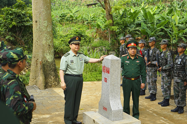 2015年5月16日,中越兩軍第二次邊境高層會晤在云南蒙自舉行期間,國防部長常萬全與越南國防部長馮光青共同觀摩中越兩軍邊界聯(lián)合巡邏活動。
