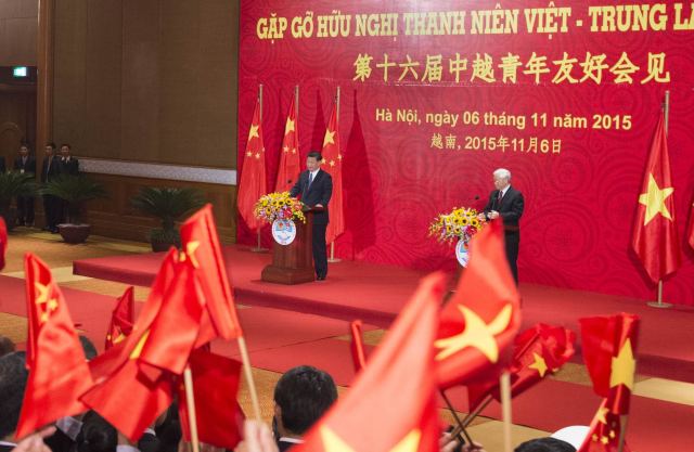 11月5日,中共中央總書記、國家主席習近平在河內(nèi)同越共中央總書記阮富仲舉行會談?!薄 ?1月6日,中共中央總書記、國家主席習近平和越共中央總書記阮富仲在河內(nèi)共同會見參加第十六屆中越青年友好會見活動的中越青年代表。