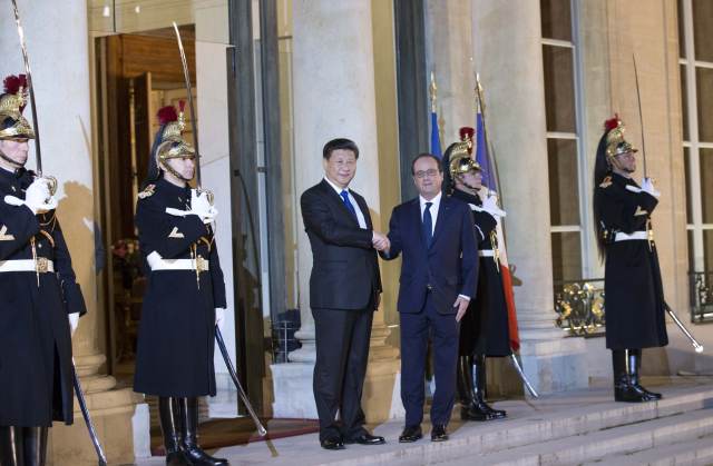 習(xí)主席29日下午抵達(dá)巴黎時(shí),受到法方熱情接待。奧朗德總統(tǒng)作為東道國(guó)領(lǐng)導(dǎo)人,面對(duì)千頭萬(wàn)緒的工作,仍專門安排時(shí)間,與習(xí)主席單獨(dú)會(huì)見(jiàn)并共進(jìn)晚餐。可要知道,法方所面對(duì)的是150多位各國(guó)元首和政府首腦,奧朗德單獨(dú)同習(xí)主席共進(jìn)晚餐,重視程度可見(jiàn)一斑。