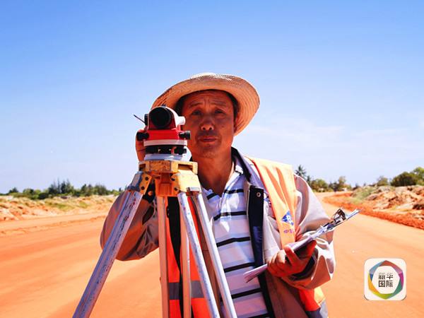 圖為今年春節(jié),中國路橋工程有限責任公司馬普托環(huán)城路項目部測量工程師黃志正在工作。(新華社記者李曉鵬攝)