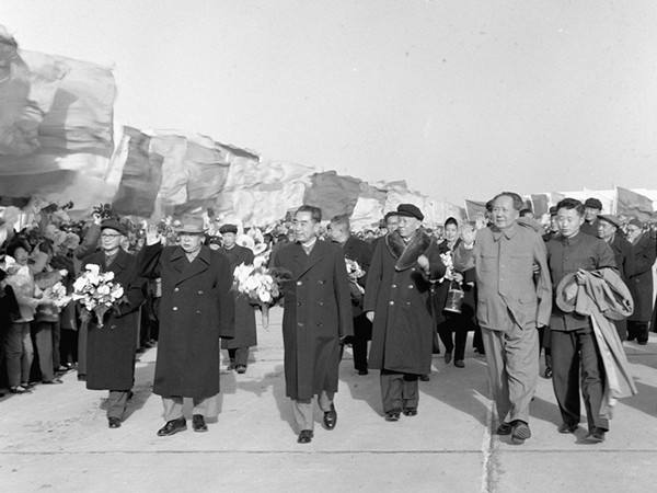 1964年3月15日,國務院總理周恩來結(jié)束了對非洲10個國家、阿爾巴尼亞和亞洲3個國家的訪問之后,乘專機回京。黨和國家領導人毛澤東、劉少奇、鄧小平等以及首都各界群眾五千多人前往機場熱烈歡迎。(新華社記者劉慶瑞攝)