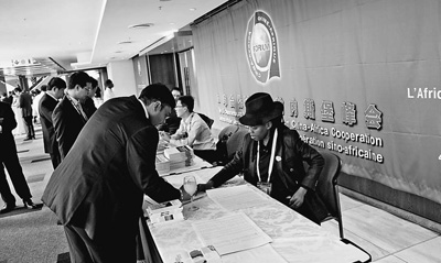 3日,印有中非合作論壇徽標(biāo),用中、英、法三種文字書(shū)寫(xiě)的“中非合作論壇約翰內(nèi)斯堡峰會(huì)”及主題詞“中非攜手并進(jìn):合作共贏、共同發(fā)展”的巨幅招貼畫(huà),將約堡桑頓會(huì)議中心裝點(diǎn)出一番全新的意境。