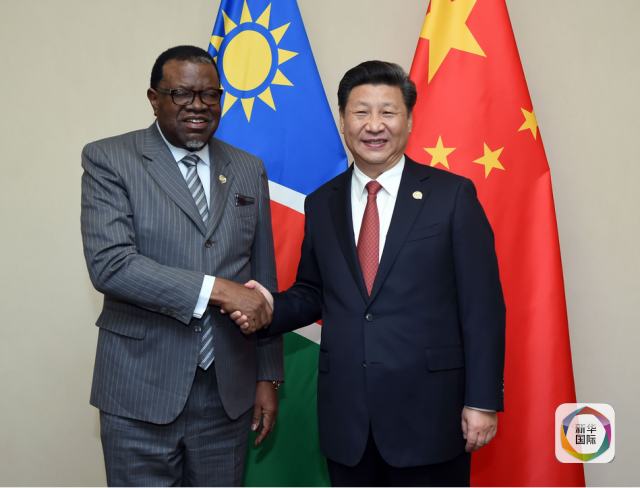 12月4日,國家主席習(xí)近平在約翰內(nèi)斯堡會見納米比亞總統(tǒng)根哥布。(新華社記者張鐸攝)