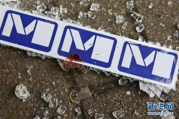 ??? 這是3月22日在比利時首都布魯塞爾馬埃勒貝克地鐵站一個出口處拍攝的沾有血滴的地鐵標(biāo)志。比利時聯(lián)邦檢察院22日發(fā)表聲明稱,當(dāng)天上午在布魯塞爾扎芬特姆機場和市區(qū)地鐵站發(fā)生的爆炸是自殺式恐怖襲擊。 新華社記者葉平凡攝