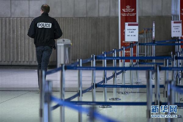 ??? 3月22日,兩名警察在法國巴黎的戴高樂機場巡邏。當(dāng)日,受比利時布魯塞爾爆炸襲擊事件影響,法國決定在全國增派1600名警察和憲兵保障安全,并在巴黎地區(qū)機場、火車站和公交系統(tǒng)增加部署警力,加強安全措施。新華社發(fā) (迪奧·杜瓦爾 攝)