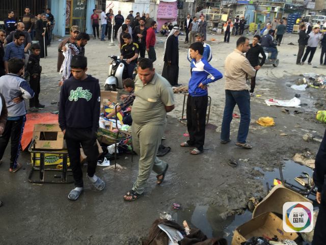 2月28日,在巴格達(dá),人們聚集在發(fā)生爆炸的市場(chǎng)附近。 新華社發(fā)(哈利勒·達(dá)烏德攝)
