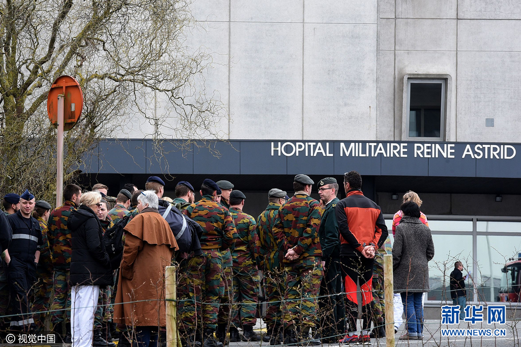 ??? 當(dāng)?shù)貢r(shí)間2016年3月24日,比利時(shí)布魯塞爾, Koningin Astrid-Reine Astrid 軍事醫(yī)院發(fā)生天然氣泄漏,民眾緊急疏散,一部分在日前布魯塞爾恐襲中受傷的民眾在此接受治療。圖片來(lái)源:視覺(jué)中國(guó)
