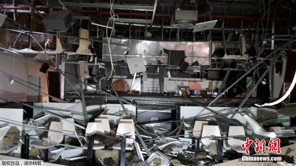 遭遇爆炸的地點(diǎn),天花板的隔板全都散落下來(lái)。