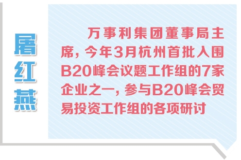 “G20杭州峰會(huì)的舉辦,對(duì)杭州來(lái)說(shuō)是很好的機(jī)會(huì),企業(yè)將受益匪淺,更是我們公司全球化的新起點(diǎn)。”參加B20峰會(huì)貿(mào)易投資組會(huì)議的??低暥麻L(zhǎng)陳宗年說(shuō)。