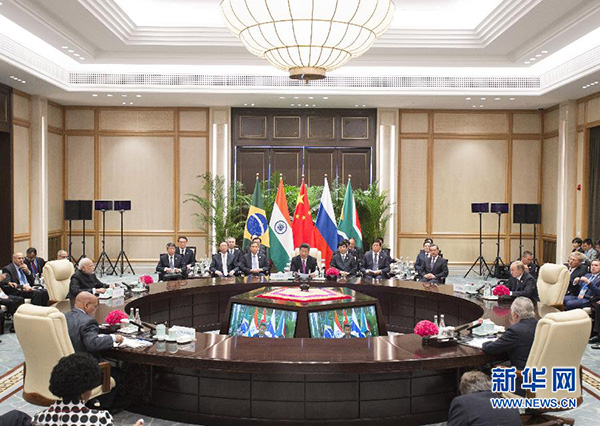 新華社杭州9月4日電(記者李忠發(fā)、李亞彪)金磚國(guó)家領(lǐng)導(dǎo)人非正式會(huì)晤4日在杭州舉行,國(guó)家主席習(xí)近平、印度總理莫迪、南非總統(tǒng)祖馬、巴西總統(tǒng)特梅爾、俄羅斯總統(tǒng)普京出席。五國(guó)領(lǐng)導(dǎo)人就金磚國(guó)家深化合作、共同應(yīng)對(duì)當(dāng)前挑戰(zhàn)深入交換意見(jiàn)。